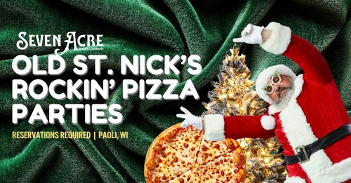 Ol’ St. Nick loves his cookies, milk, and PIZZA! That’s why Santa will join Seven Acre for seven special nights that include a buffet of famous house-made pizzas, salads, plus other delicious treats!