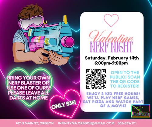 Haven’t been to a Parents night out before? Parents constantly rave about how much fun their kids have at our parents nights out with their friends. And the best part? The kids have fun, get rid of energy, and will be talking about it for days!. There are only 30 spaces available, so register today. Don't have a Blaster? Not a problem, we have plenty to share! Please leave all darts at home.